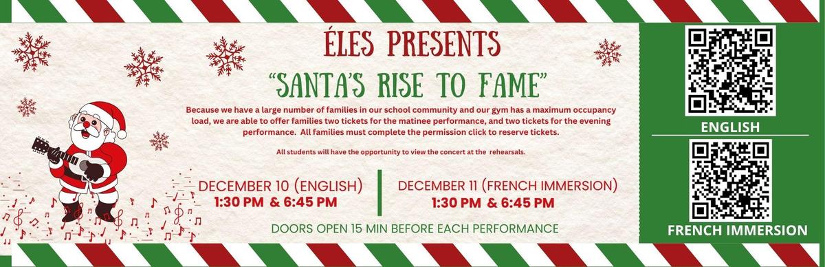 ÉLES presents "Santa's Rise to Fame" Click here for the English Performance Click her for the French Immersion performance