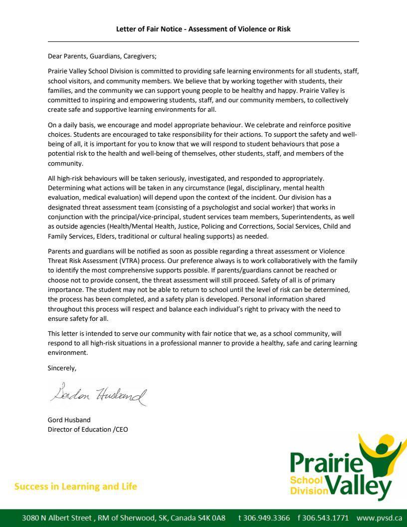 Prairie Valley School Division’s administrative procedure, AP-1302: Student Personal Electronic Devices, outlining the use of personal electronic devices at all Prairie Valley schools is available on the Prairie Valley website. In addition to providing direction related to students’ use of personal electronic devices, this document provides guidelines regarding school staff members’ responsibilities with respect to the use of personal electronic devices.